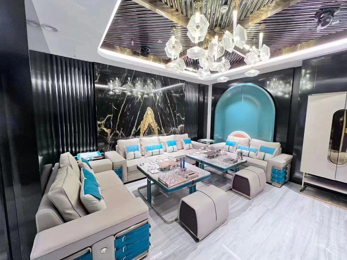 在这里,您可以尽情享受K歌的乐趣,释放内心的激情与欢笑;还可以品尝到各式美食,搭配精心调制的饮品,满足您的味蕾享受;更有专业DJ打造的音乐现场,为您呈现最优质的娱乐体验。